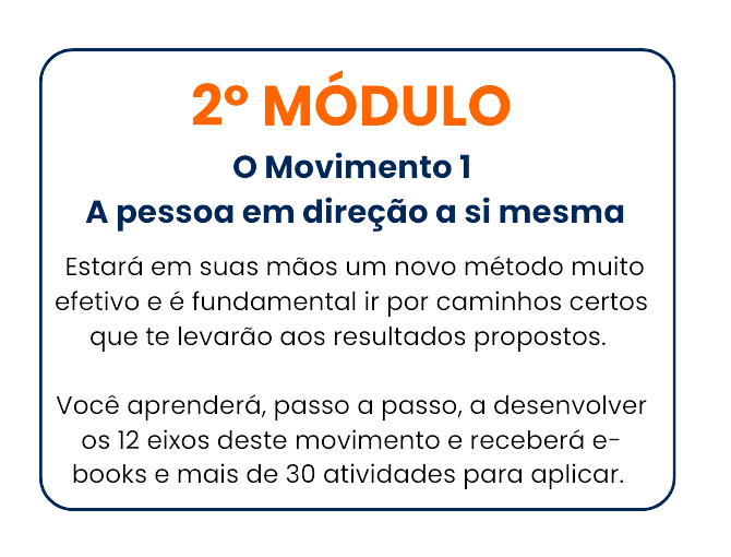 Você receberá durante o curso um conjunto de materiais bônus, para apoiar a implementação da Metodologia, especialmente, os e-books de conteúdos para o desenvolvimento dos primeiros eixos. Eles foram escritos especificamente para o trabalho com a Metodologia Plug & Play.